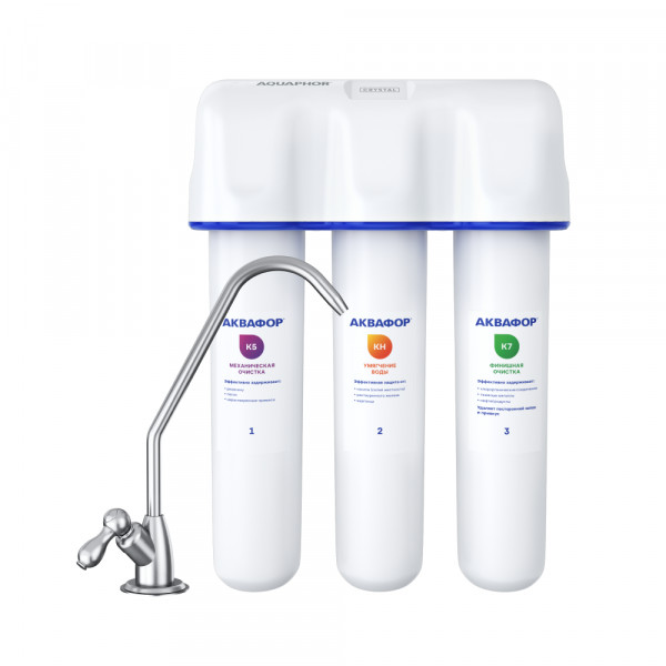 Фильтр подходит для воды с жесткостью до 4-5 мэкв/литр. Определить это легко: без фильтра накипь заметна через две недели. Для более жесткой воды (накипь видна через 2-3 дня) рекомендуем выбрать систему обратного осмоса, иначе менять или регенерировать умягчающий модуль KН придется раз в 2-4 недели. В этом случае фильтры обратного осмоса выгоднее – они полностью удаляют избыток солей жесткости, защищают технику от накипи, а ваши напитки и еду – от постороннего привкуса.