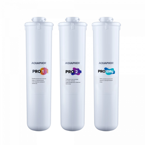 Комплект сменных модулей (без мембраны) для системы DWM-102S Pro. Рекомендуется замена модулей предфильтрации PRO 1 и PRO 2 приблизительно раз в полгода (в зависимости от состава водопроводной воды).