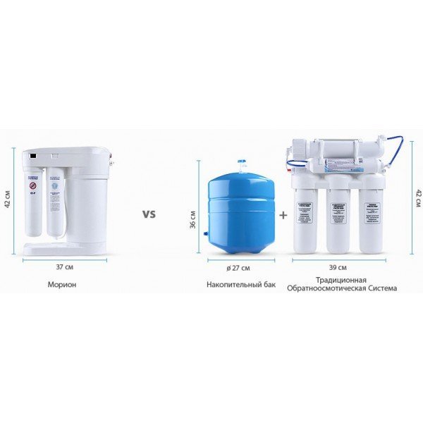 Благодаря эффективности DWM-101S Мориона Вы расходуете до 2 раз меньше воды. В традиционных осмотических фильтрах для получения одного литра чистой воды тратится до 16 литров воды, которая сливается в дренаж. В Аквафор DWM-101S это соотношение удерживается на уровне 1:4.