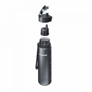 Материал бутылки — ударопрочный пластик последнего поколения Tritan™. От более популярного поликарбоната он отличается молекулами и силой полимерных связей между ними. Поэтому Tritan™ прочнее обычного пластика, который используется для хранения пищевых продуктов.